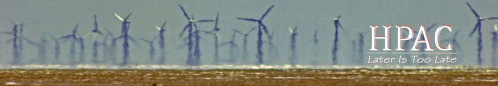 Wind turbines in South Texas, seen from Padre Island National Seashore. The Laguna Madre, between the Seashore and the mainland, is a narrow body of water a mile or two wide at most that extends over a hundred miles landward from Padre Island from north of corpus Christi to Brownsville and the Mexican border. The wind turbines line the mainland just inland of the Laguna shore. Atmospheric conditions in this image created a mirage that optically raised the foreground so that it appears the wind turbines are under water. This makes for a great photo, but it is a mirage, not real; not photoshop.