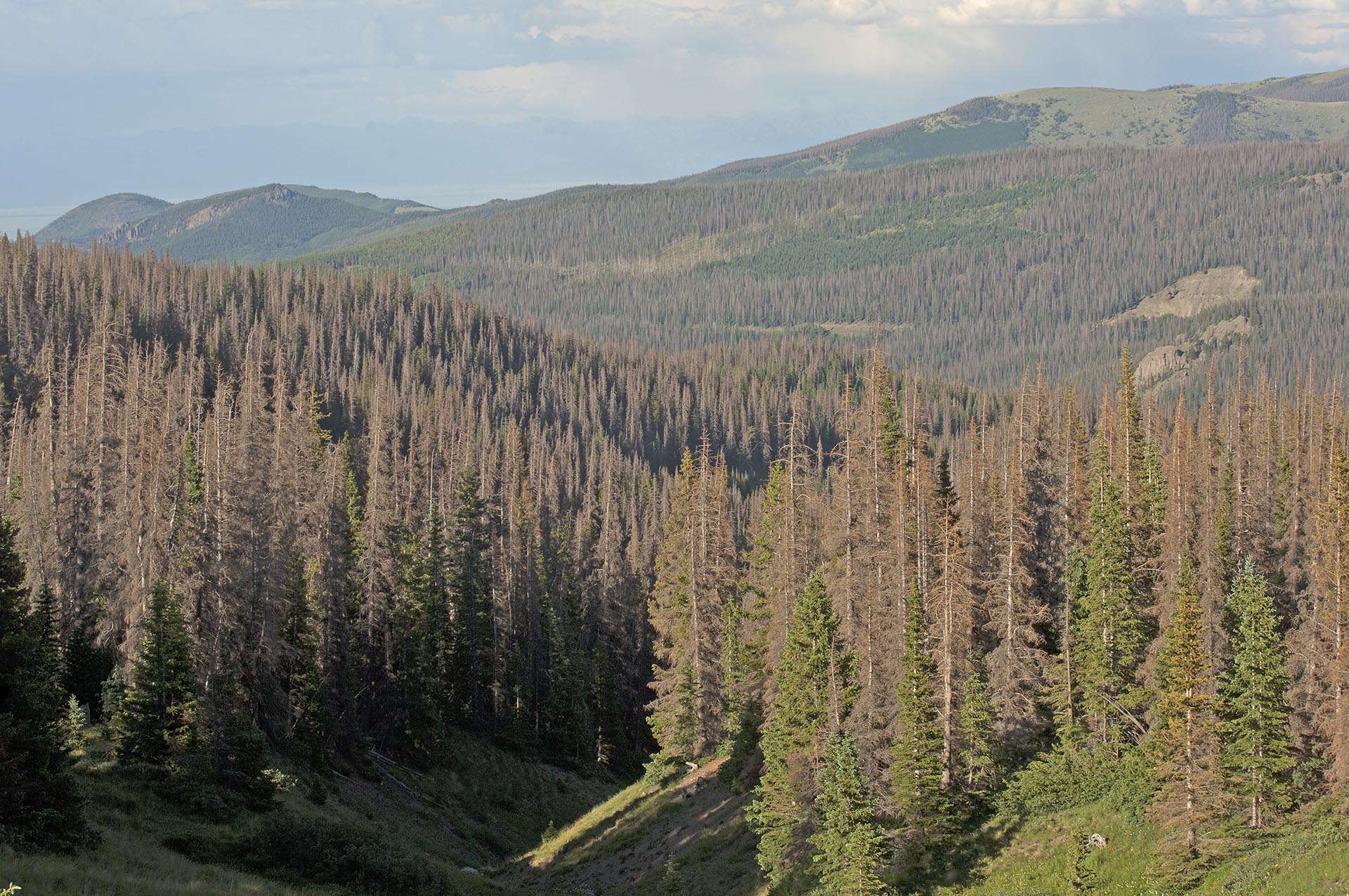 Cover Photo : Spruce bark beetle kill above 10,000 to 11,000 feet in the Rocky Mountains of Southern Colorado – very similar to climatic conditions in the boreal forest.. Credit: Bruce Melton
